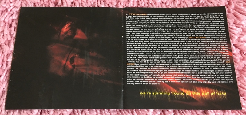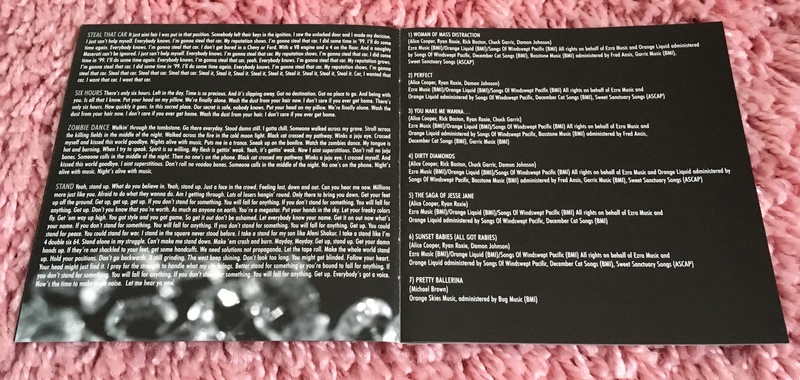 Inside is a rather disappointing folded paper inlay, which contains only track listings and credits. Also, Fire is described as "previously unreleased" but that isn't true as it had turned up several times before (most notably as a B Side to the Hey Stoopid era single Love's A Loaded Gun).