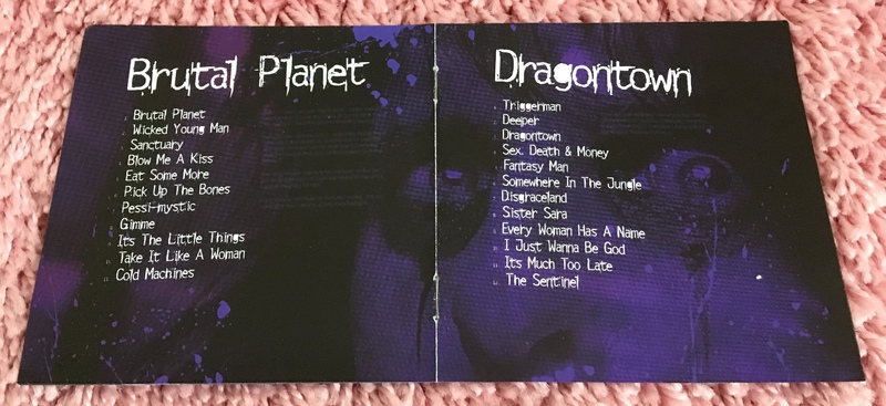 This European compilation CD includes the full Brutal Planet and Dragontown albums (minus any bonus material) on two separate discs, housed in a clear jewel case. The bespoke blue and purple themed artwork includes a few images derived from the original Dragontown album.