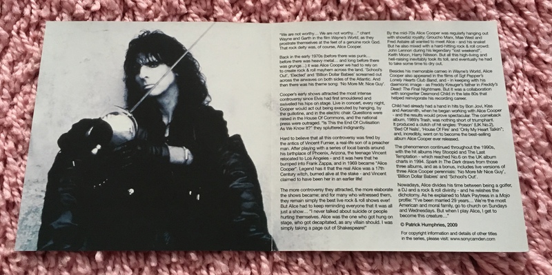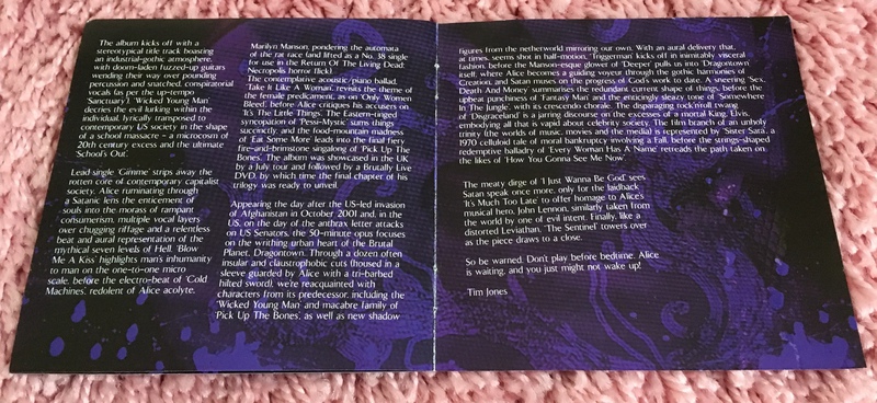 The eight-page booklet contains track listings and an interesting, albeit not entirely accurate, biography of Alice by music journalist Tim Jones.