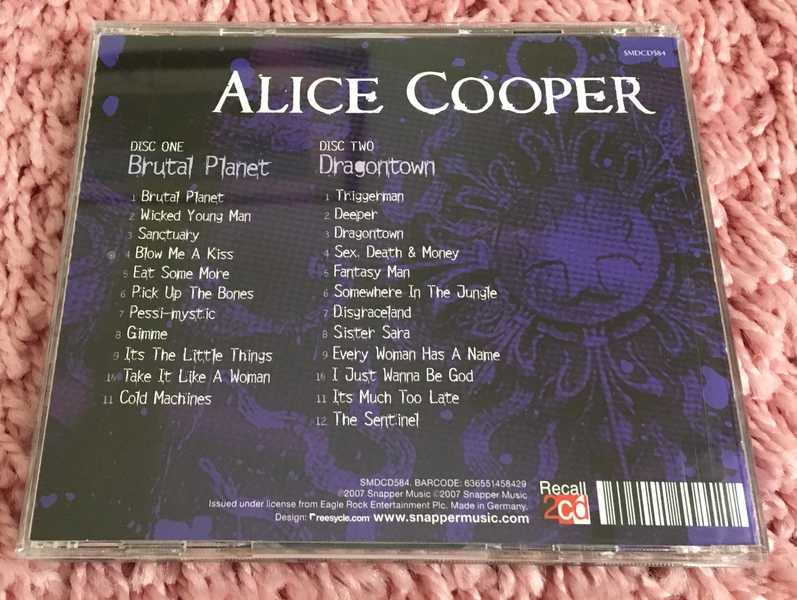 This further European compilation CD originally retailed for about £5 and includes the full Brutal Planet and Dragontown albums (minus any bonus material) on two separate discs, housed in a clear jewel case. A simple paper inlay is provided, containing track listings and credits for both albums plus an image of Alice from the original Brutal Planet album booklet.