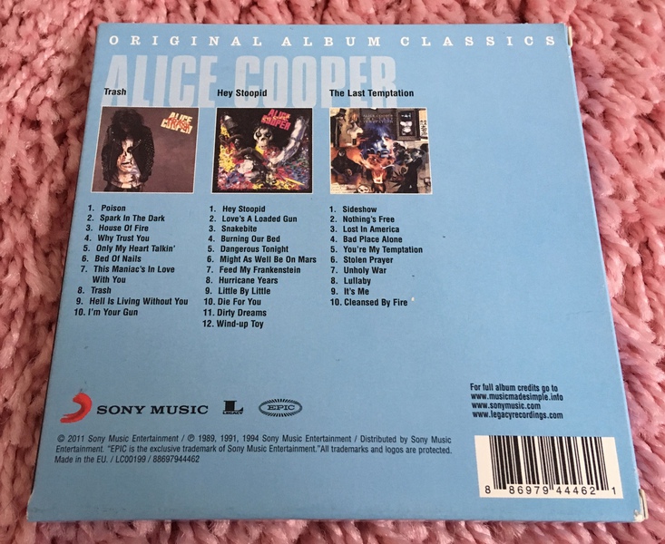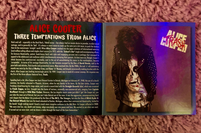 This European three-disc CD compilation set contains the trio of solo Alice albums released under the Sony label (i.e. Trash, Hey Stoopid and The Last Temptation). For about £10 all you get are the CD's in simple card sleeves, which are housed in a slipcase, but you can't really complain for the price, making this an ideal introduction to some of Alice's most popular solo work.