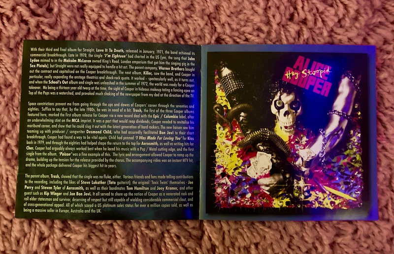 This European compilation CD set features three separate jewel cases housed in a slipcase. The first two discs contain material from the Trash (i.e. Poison, Spark In The Dark, House Of Fire, Only My Heart Talkin', Bed Of Nails and Hell Is Living Without You), Hey Stoopid (the entire album except Dirty Dreams) and The Last Temptation (i.e. Sideshow, Lost In America, You're My Temptation, Stolen Prayer, It's Me and Cleaned By Fire) albums.