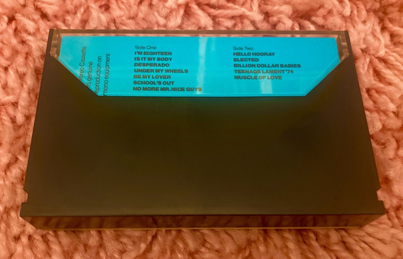 One notable aspect of this release is that No More Mr Nice Guy is moved ahead of Hello Hooray and Elected compared to the usual arrangement (and onto the back of Side A). This was presumably due to the need to adequately fit everything onto the tape.