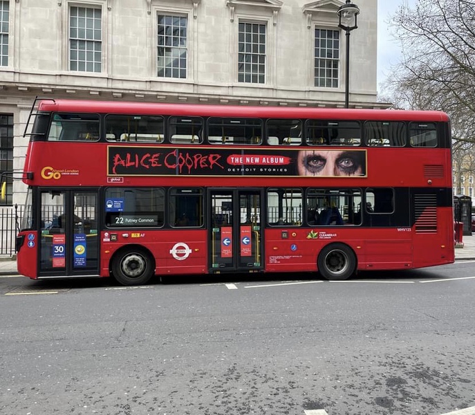 The album features somewhat underwhelming artwork, with night-time images of the Detroit skyline superimposed with Batman-style searchlights featuring Alice's eyes complete with spider make-up. It's by no means dreadful but you can't help thinking that, for the second album running, perhaps the budget was not as high as it should have been. That said, the album was nicely advertised upon its launch, with cool images of Alice popping up in Berlin and London (see images below).