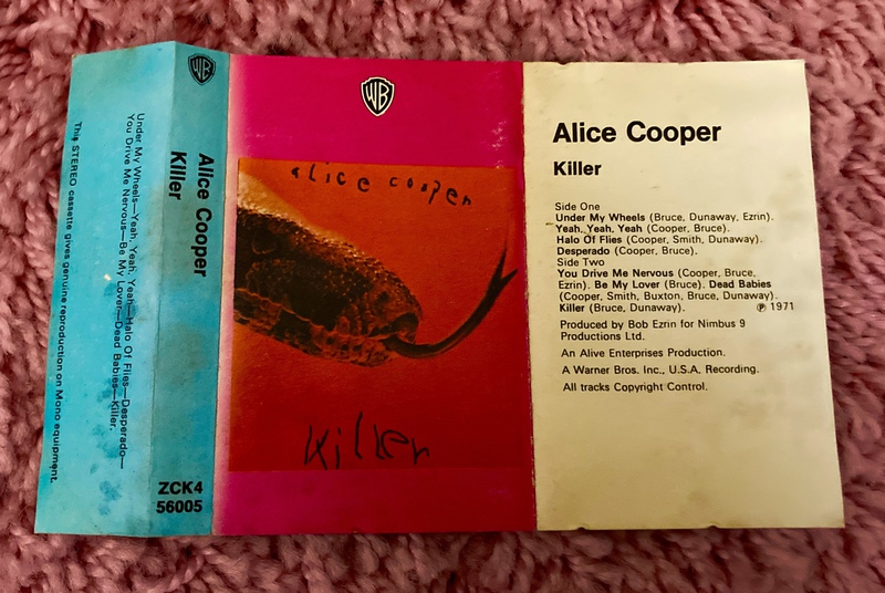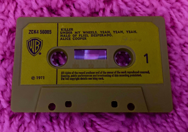 This further UK 1st edition cassette of Killer is exactly the same as the above version only that it features a grey tape with green stickers.