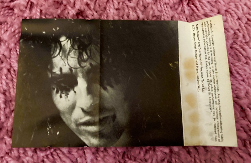 One notable aspect of this release is that the track listings presented on the front match those of the Canadian 8-Track release (above). This is rather amusing as cassettes, of course, have two sides, whereas 8-Tracks have four 'programs' (which are designated by the two dashed lines). This oversight is further emphasised by the indication that Halo Of Flies spans more than one of the 'programs' on the cartridge (meaning that it had interrupted playback as the reading head changed position). In reality, the material from programs 1 and 2 are Side A, and programs 2 and 4 are Side B of the cassette.