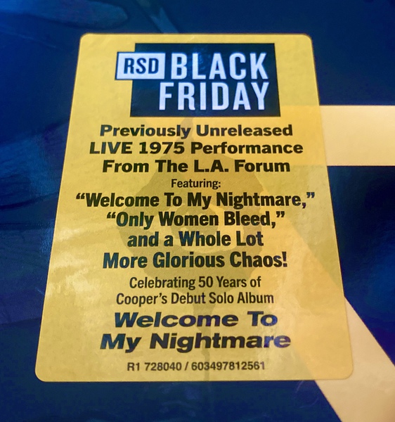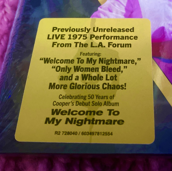This welcome USA Black Friday Record Store Day 2019 release features the live 1973 Alice Cooper Group concert audio previously provided on the bonus CD of the Remastered & Expanded version of Billion Dollar Babies (which originally were recorded for the Good To See You Again, Alice Cooper film, below). Although it is stated on the front as being from 'Houston, Texas', Unfinished Sweet is understood to have been recorded at Dallas (also in Texas) during the same tour (it should therefore have probably just been called 'Texas').