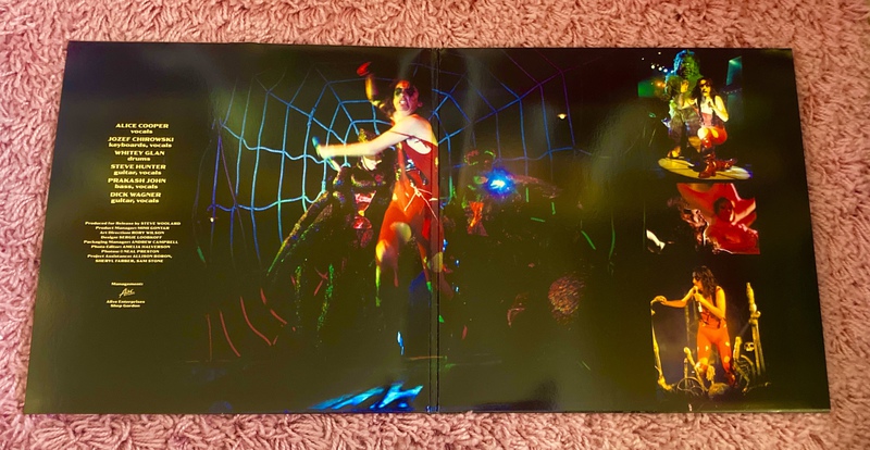 A large inlay contains images of the Alice Cooper Group in concert and credits. Additionally, the image of Alice inside the sleeve is surrounded by an interesting foreword by Steve Pittis of Dirter Promotions.