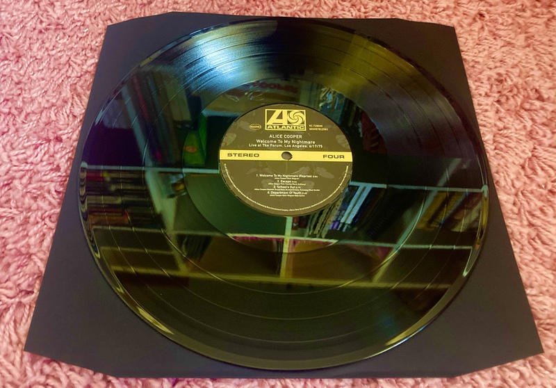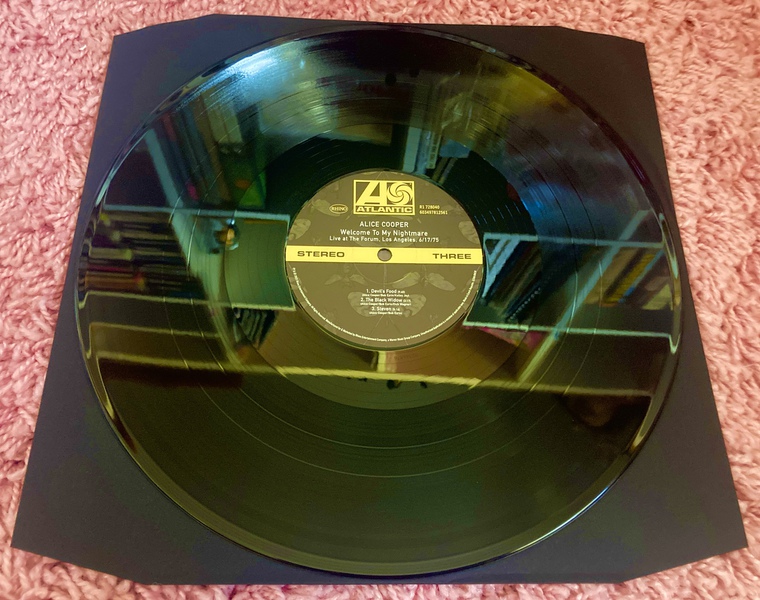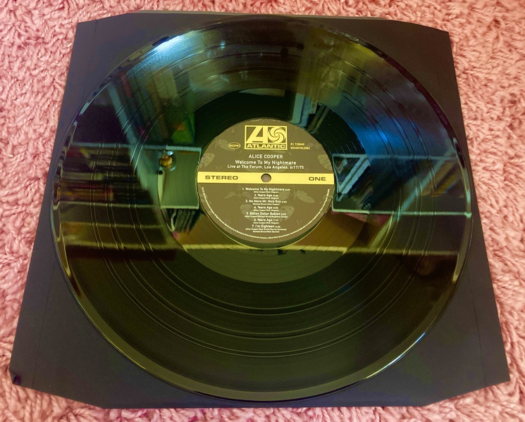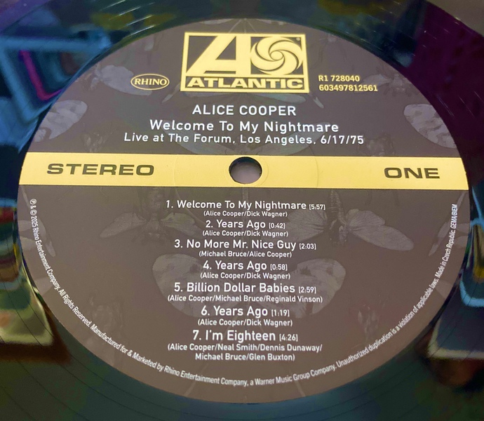 The audio, provided on a black vinyl disc, is exactly the same as the Billion Dollar Babies CD only that I Love The Dead is about 4 seconds shorter (it appears to have had a tiny part of the mid-track instrumental cut out).