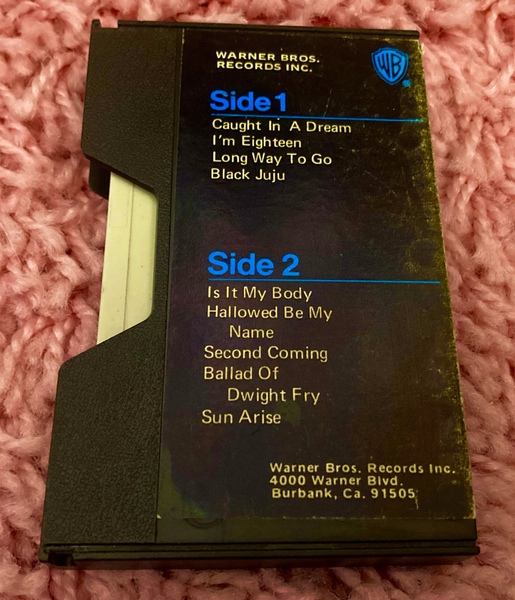 Unlike the USA 8-Track albums (above) the track order is the same as the usual arrangement. The length of Balled Of Dwight Fry (6:33), is such that it spans more than one of the 'programs' on the cartridge (meaning that it had interrupted playback as the reading head changed position). This illustrates the limitations of this music format.