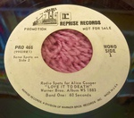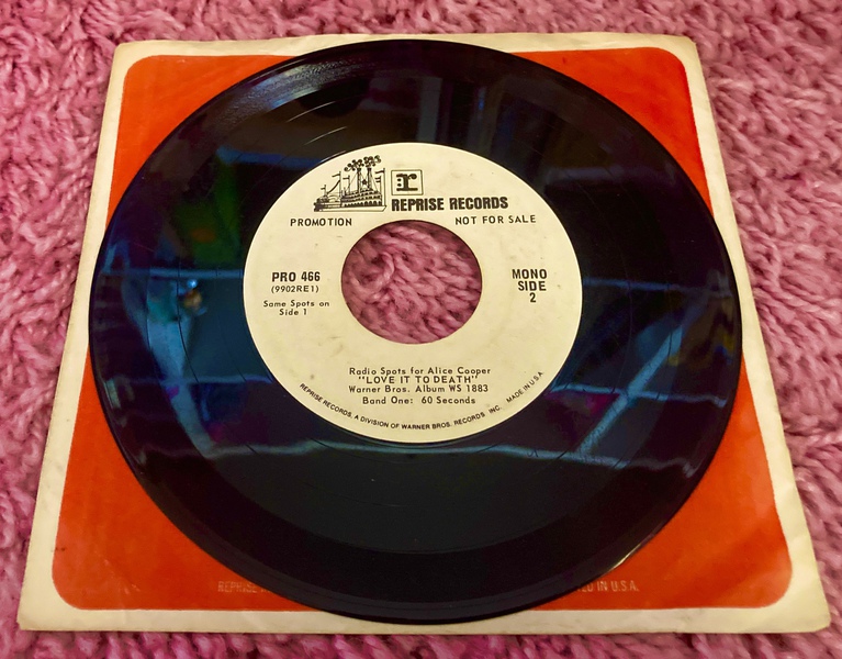 This extremely rare USA 7" promotional vinyl features white Reprise Records labels, a Reprise Records paper sleeve, and includes identical 60 second 'Radio Spots' for the Love It To Death album on both Sides A and B. Radio Spots were basically audio adverts that were given to radio stations by music labels in order to promote their latest releases between songs.