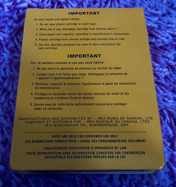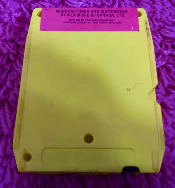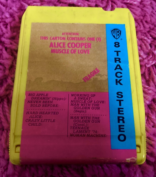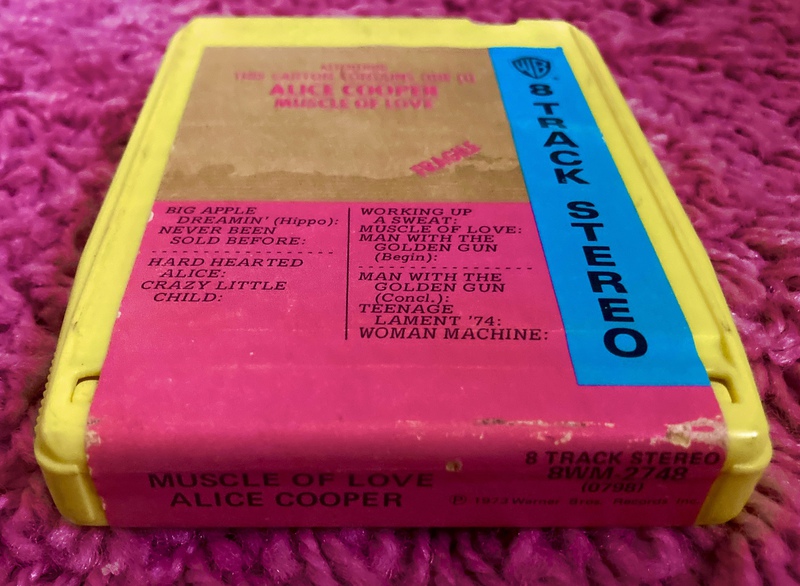This Canadian 8-Track version of Muscle Of Love features a yellow cartridge and includes the original album cover artwork on the front together with track listings. The wrap-around sticker also provides the product code and details of the manufacturer on the side and rear respectively. This copy also includes a generic card sleeve.
