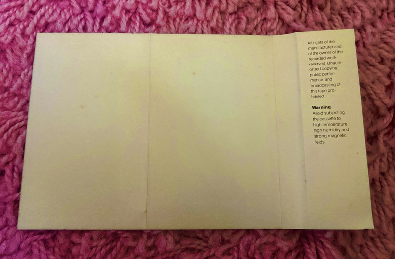 Inside is a cream tape with white stickers that provide additional track listings and credits.