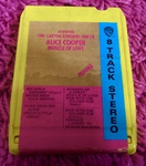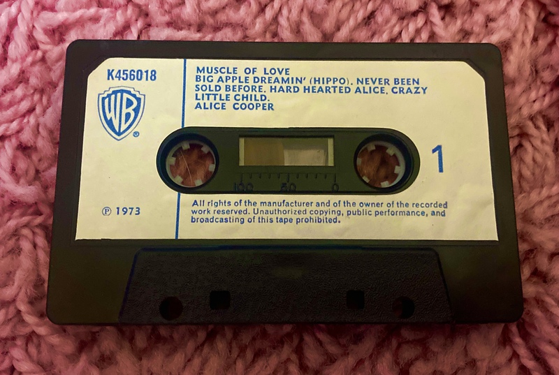 This remastered USA cassette version of Muscle Of Love by Metal Blade Records is notable in that, whilst it includes similar (if somewhat compromised) artwork as the original LP release (above) it also features the following additional 'hand-written' note by Alice: