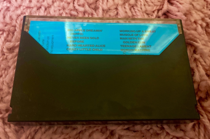The opaque white cassette features the track titles and, interestingly refers to Working Up A Sweat as 'Workin' Up A Sweat' (which I've not seen abbreviated like this on any other releases of the Muscle Of Love album).