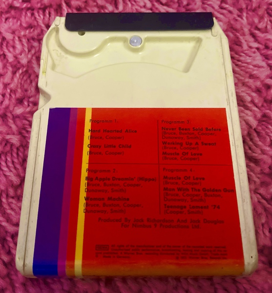 As with other editions of this album, the track listings provided on the pink poker chip are in completely the wrong order to that of the original vinyl version. To make matters more confusing, the running order on this edition is different again and was presumably due to the need to adequately fit everything into the four 'programs' on the cartridge.
