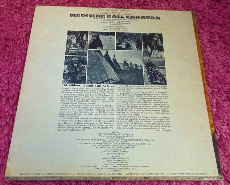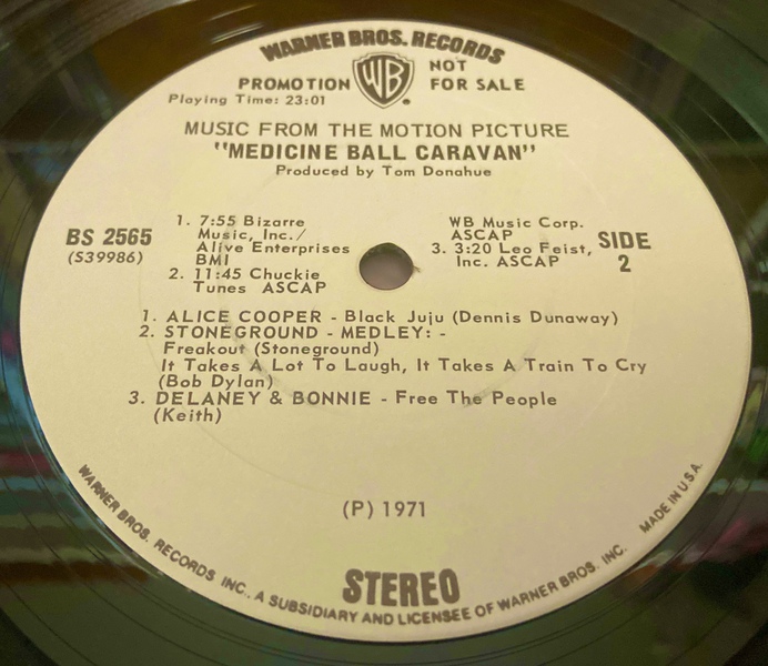Medicine Ball Caravan was a documentary film about a 154-person bus and truck tour that "set out to spread the gospel of flower power to the hinterlands of the U.S." in 1970. Somewhat inexplicably, Alice Cooper were included, with the film featuring a typically raucous version of Black Juju (from the Love It To Death album).
