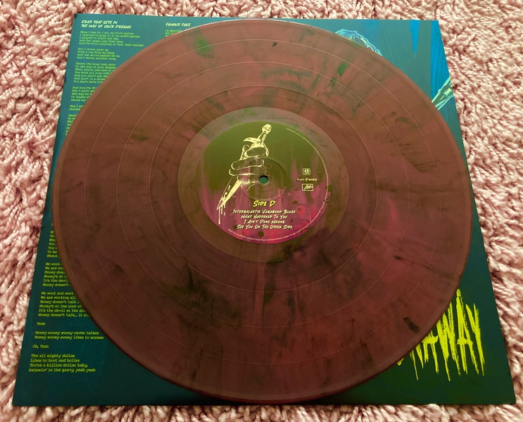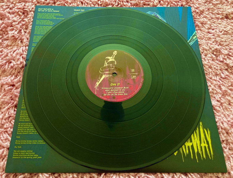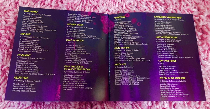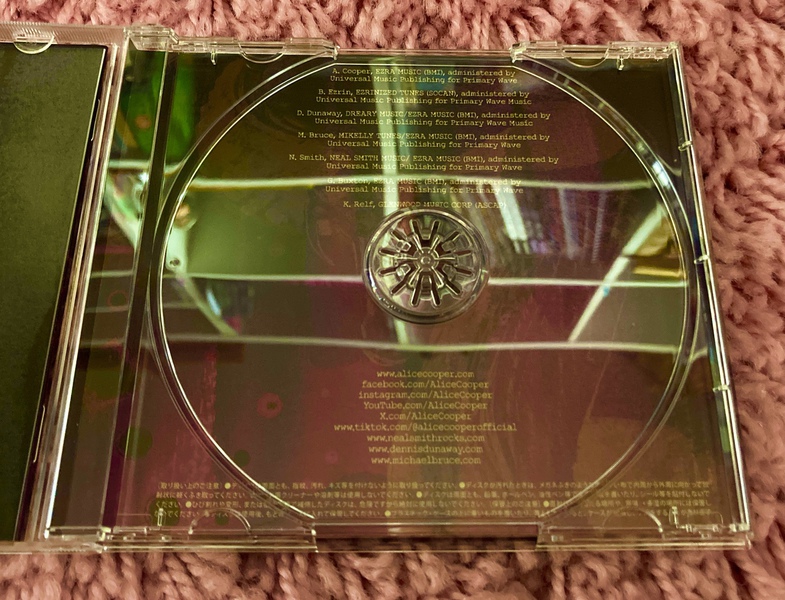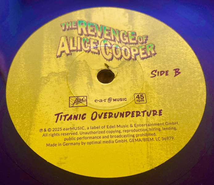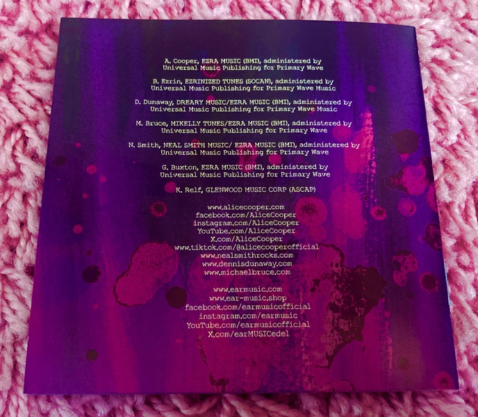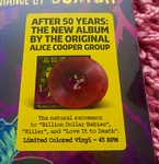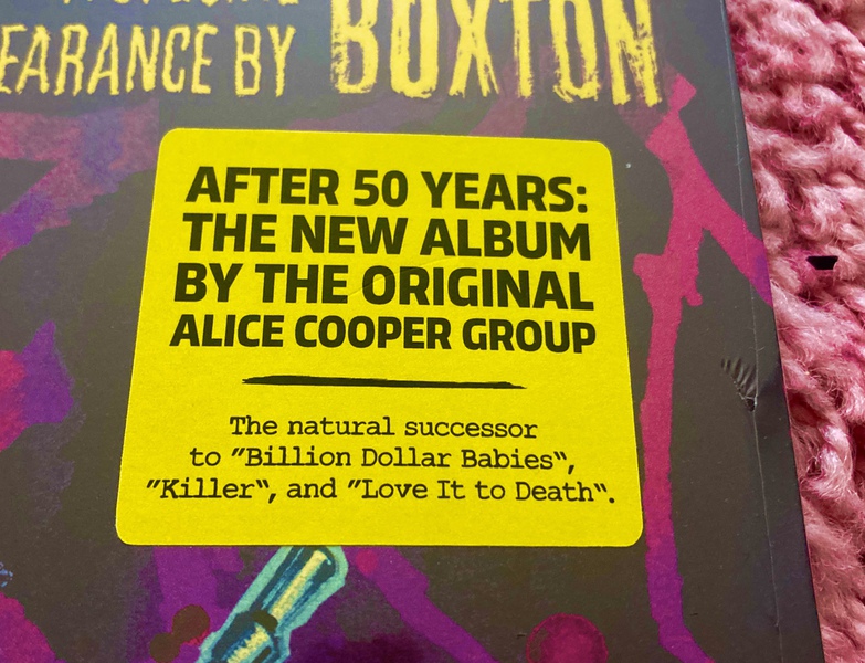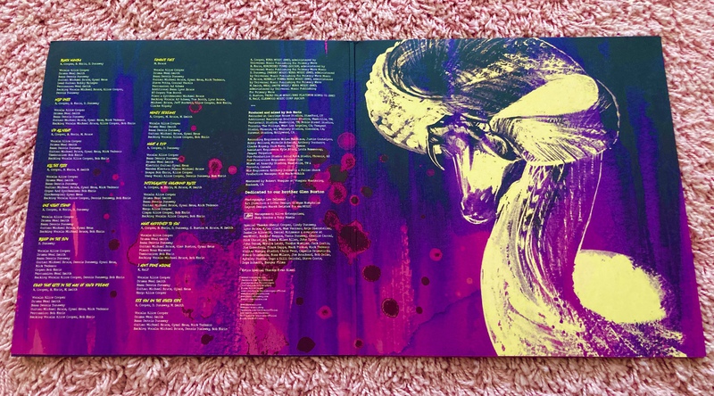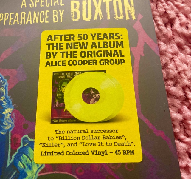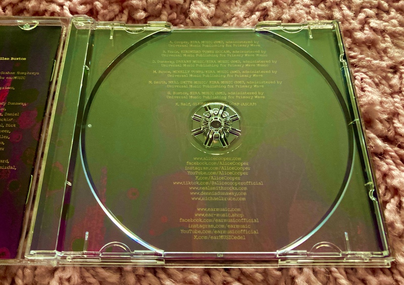 In the USA, TalkShop.Live offered the violet marble version with an additional 12" x 12" insert autographed by the Alice Cooper Group. Latterly, HMV in the UK would offer the black vinyl version with the same autographed insert for free (these understandably sold out very quickly). A CD 'Special Signed Edition' with a smaller 5" x 5" insert was also distributed in limited numbers by earMUSIC.