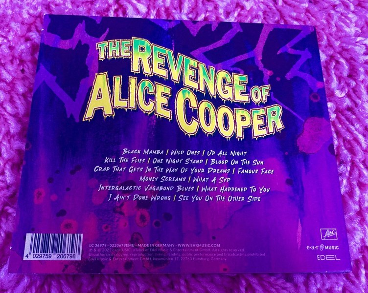 The first physical version of The Revenge Of Alice Cooper was, technically, this innovative 42 x 30cm 'Smart Poster', which was released in May (more than two months ahead of the official release date) and offered fans the opportunity to listen to (but not download) tracks via Serenade as-and-when they became available digitally elsewhere. This meant that Black Mamba could be heard upon arrival and, more importantly, the two bonus tracks Return Of The Spiders 2025 and Titanic Overunderture.
