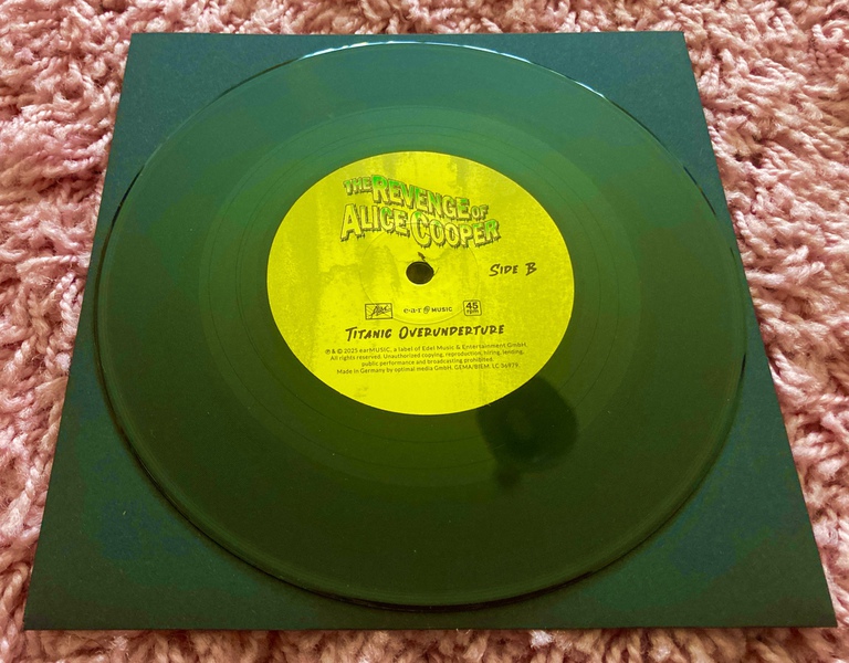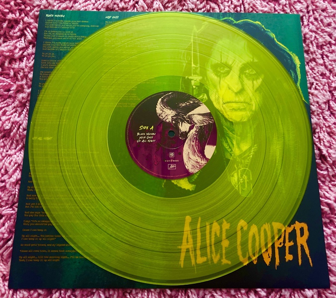 This 'Limited' European 12" vinyl version of The Revenge Of Alice Cooper is exactly the same as the black vinyl version (above) only that it features two translucent 'Neon Yellow' 45 RPM, 180 gram, discs, an alternative hype sticker and includes a different barcode on the back (stuck over the original one).
