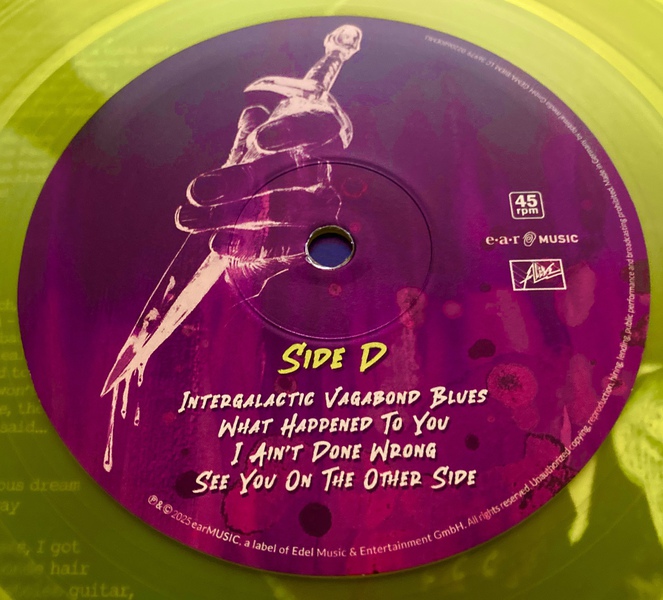 The packaging features expanded artwork from the front cover together with track listings, lyrics and credits. Inside are two black 45 RPM, 180 gram, discs with custom earMUSIC labels.