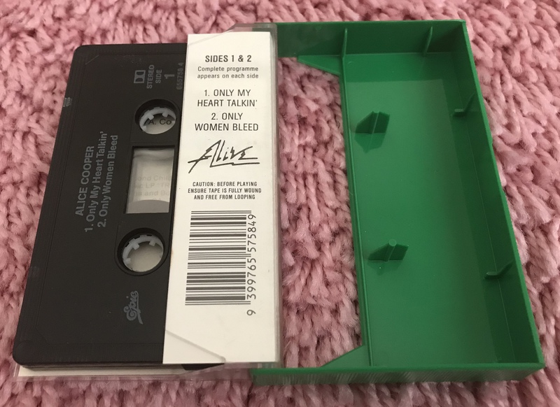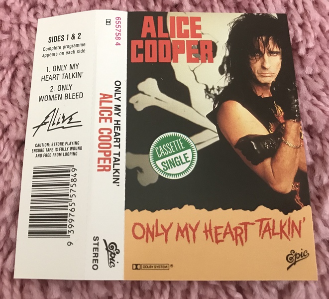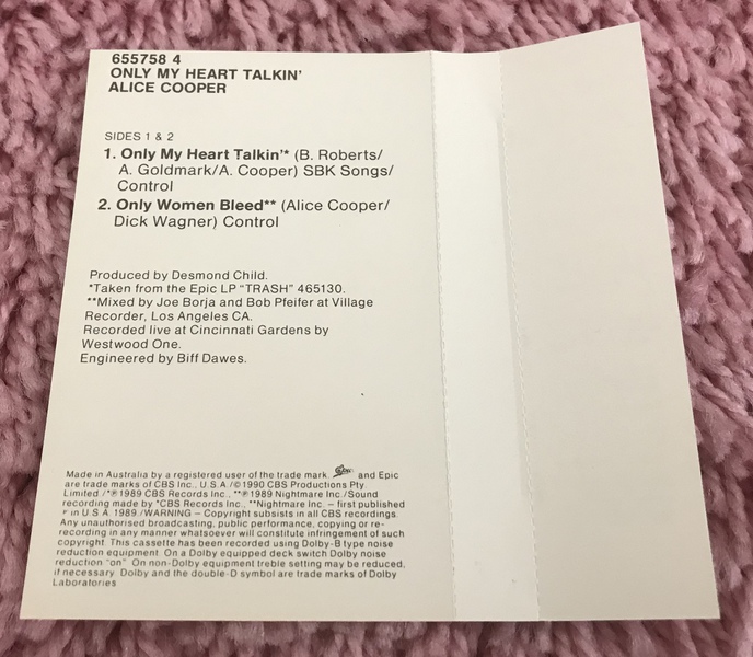 This limited edition Australian release of Only My Heart Talkin' features a cassette and 7" version of the single sealed together. Both include Only My Heart Talkin' (from the Trash album) and a live version of Only Women Bleed (recorded at Cincinnati Gardens in 1987). These are repeated on both sides of the cassette and on Side A and Side B of the vinyl version.