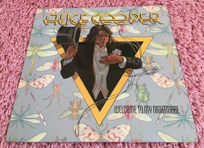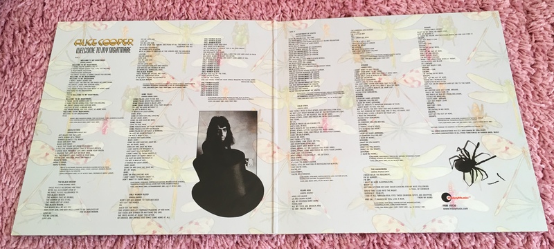 The front of the sleeve features images of Alice, a top hot and spider from the inner sleeve of the Welcome To My Nightmare vinyl album (above). On the back is promotional material for other artists of the time together with track listings and credits.