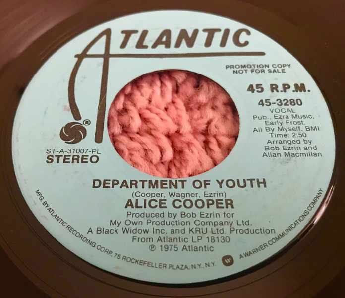 This USA 7" promotional vinyl single features Atlantic labels, comes in an Atlantic paper sleeve, and includes Mono and Stereo versions of Department Of Youth (from the Welcome To My Nightmare album) on Sides A and B respectively. This was a common feature of promotional singles at the time, as it enabled radio stations to play songs on both AM (Mono) and FM (Stereo) stations.