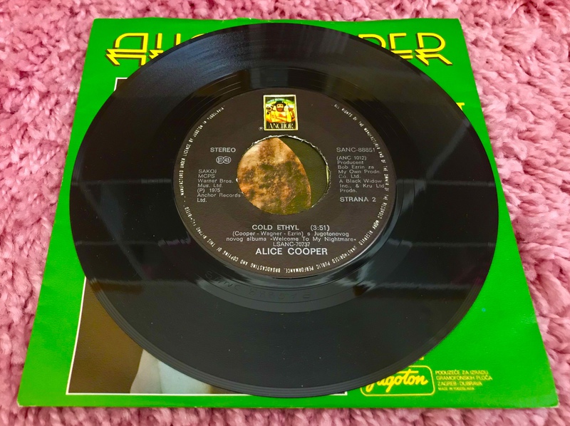 This Yugoslavian 7" vinyl single features black Anchor Records labels, comes in a paper sleeve and includes Department Of Youth on Side A and Cold Ethyl on Side B (both from the Welcome To My Nightmare album).