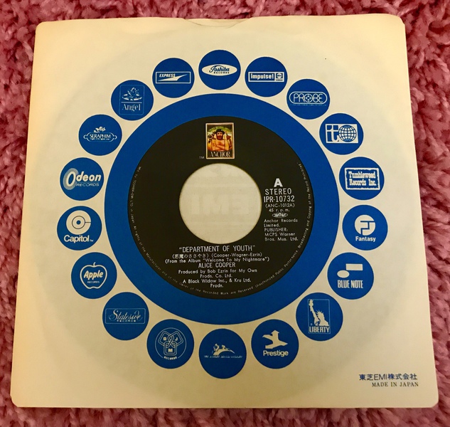 This rare Japanese 7" vinyl single features black Anchor Records labels, comes in an EMI paper sleeve complete with colour insert, and includes Department Of Youth on Side A and Cold Ethyl on Side B (both from the Welcome To My Nightmare album).