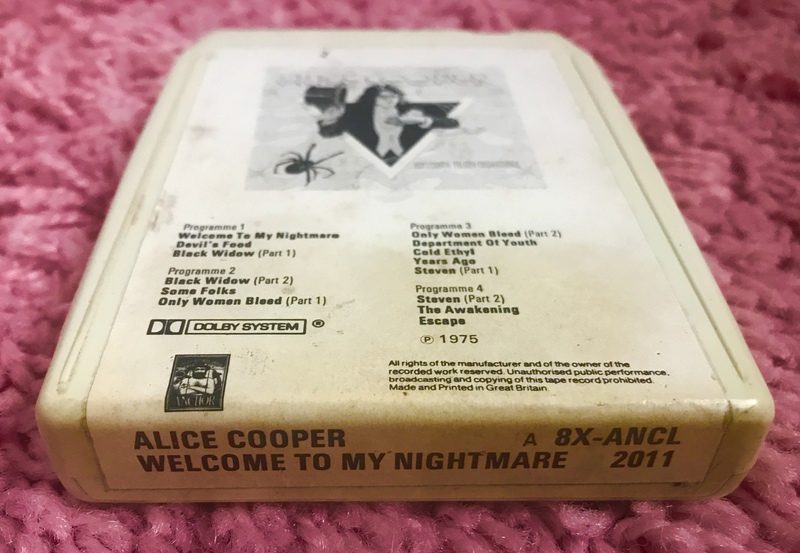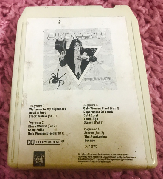 As with the USA 8-Track (above) the track order is different to the usual arrangement, with the majority of them appearing out-of-place. Also, The Black Widow (abbreviated to 'Black Widow') and Only Women Bleed now span more than one of the 'programs' on the cartridge (meaning that they had interrupted playback as the reading head changed position). This illustrates the limitations of this music format.